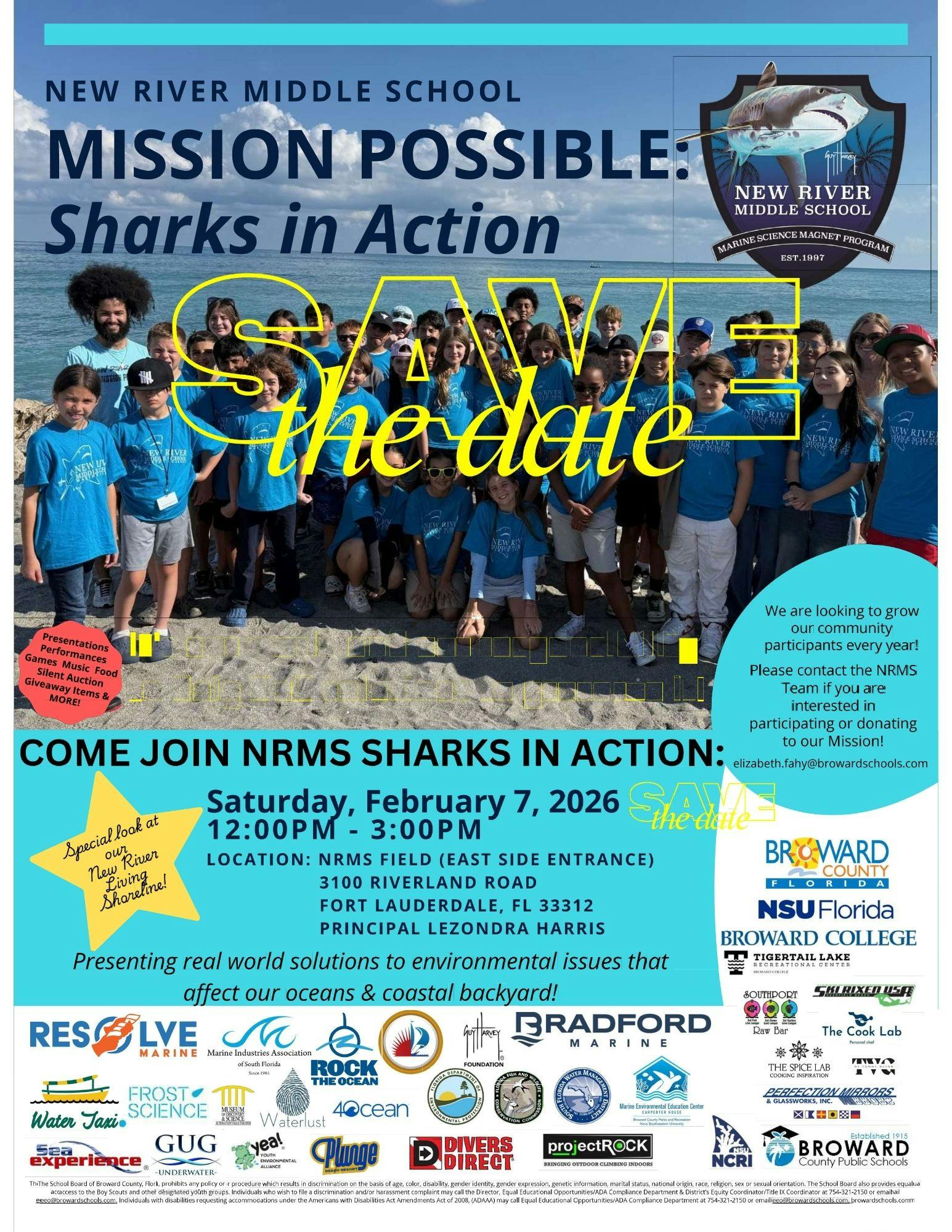 Mission Possible: Sharks in Action is a school-wide, student-led Project Based Learning showcase that brings together students, families, and the greater New River community to celebrate learning, conservation, and action. This is their fourth year hosting the event, and students will be presenting projects centered around our driving question: “How can we keep our oceans healthy and protect our coastal backyard?”