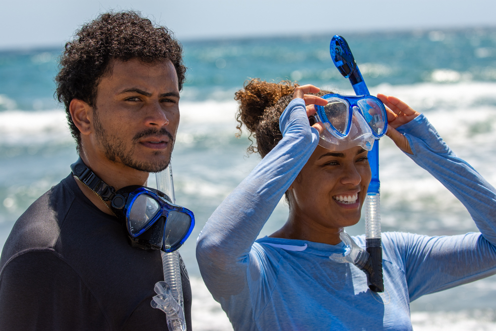 First let’s go over the most obvious differences between the eight masks—some feature opaque (usually dark in color) skirts and some feature clear skirts. The purpose of a dive mask’s skirt is to provide a watertight seal around the face, so why does the color matter? Clear skirts allow more light to reach the eyes. This is a great feature if you tend to explore murkier or darker waters or if you’re more prone to feeling uncomfortable in small spaces. The darker skirts are often used by photographers or people with eyes easily sensitive to too much light. Having that bit of shadowing, almost like a hat, allows you to focus on what’s ahead rather than feel overwhelmed by the amount of light pouring in.