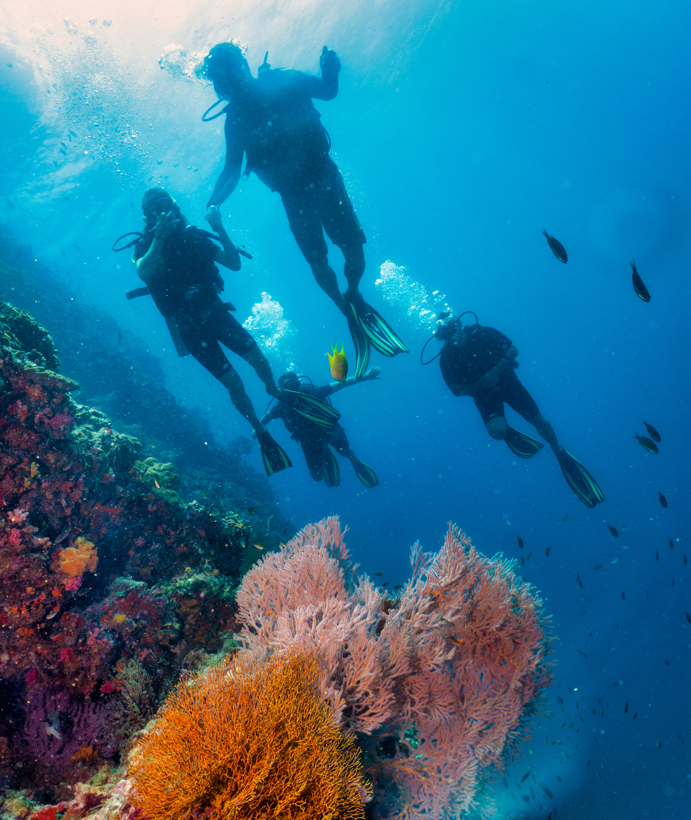 Once the boat has reached its dive destination, no need for a splashy race – there's plenty of ocean to share. Remember that Pro Tip from earlier? If you want to be one of the first divers to hit the water, arrive early and get a spot by the exit port.