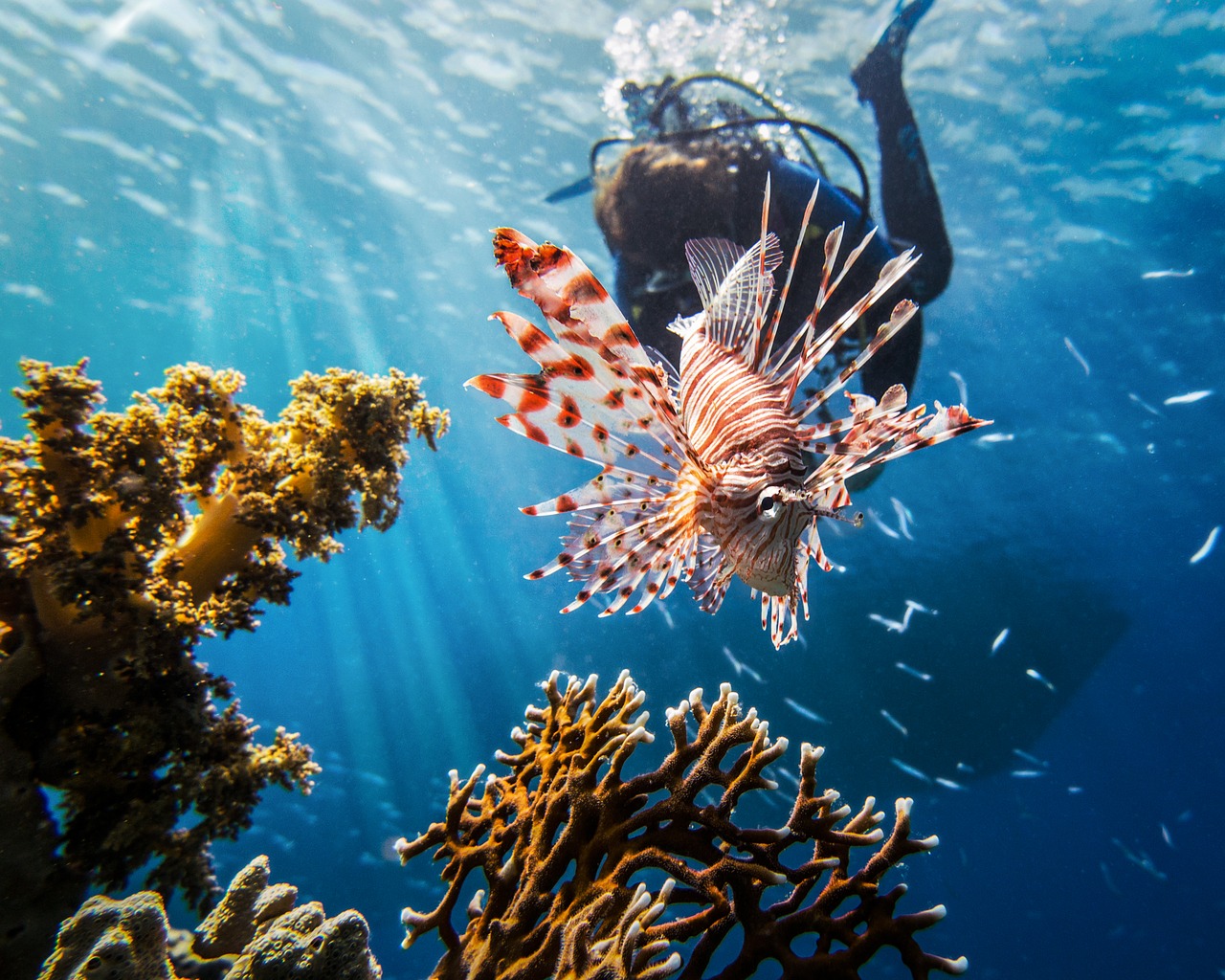 Ok. You’re diving and you see those beautiful candy cane stripes and fan-like fins. What do you do? Well first off, if you are not experienced in handling Lionfish, you should probably stay away. Their spines can deliver a sting that will cause extreme pain that can last for days or even longer. If you see a Lionfish while diving, you can report the sighting to the Reef Environmental Education Foundation (REEF) here.