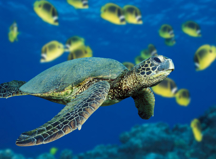 There are many places around the world to dive with sea turtles. Florida is an excellent place to snorkel or scuba dive with turtles because 5 of the 7 species migrate to Florida to breed every year. Sea turtles are typically very calm and gentle. They may even swim up to divers in areas where they have become accustomed to them. Sea turtles are known to be very timid though. You must be sure to move slowly and calmly so as not to spook the turtle. Always approach turtles from the side so that you are in their full view. There is no minimum distance you should be from a turtle, but you should try to remain 10 feet away from them unless they are approaching you. Never swim above a turtle. They will need to come to the surface for air, and you don’t want to prohibit them from doing so. Never touch or feed a turtle. It can be dangerous for the turtle or even you, and in many areas it is illegal to do so.