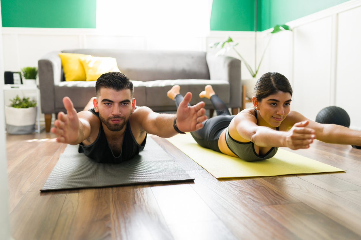 Lie on your stomach with your hands reaching forward and your feet pointing directly back. Inhale and lift your entire body off the ground. The legs stay straight while you lift the thighs off the floor, the arms reach forward and up, and the neck stays long. Hold this pose for 5-10 breaths at a time and relax a few moments before doing just one more for the day.