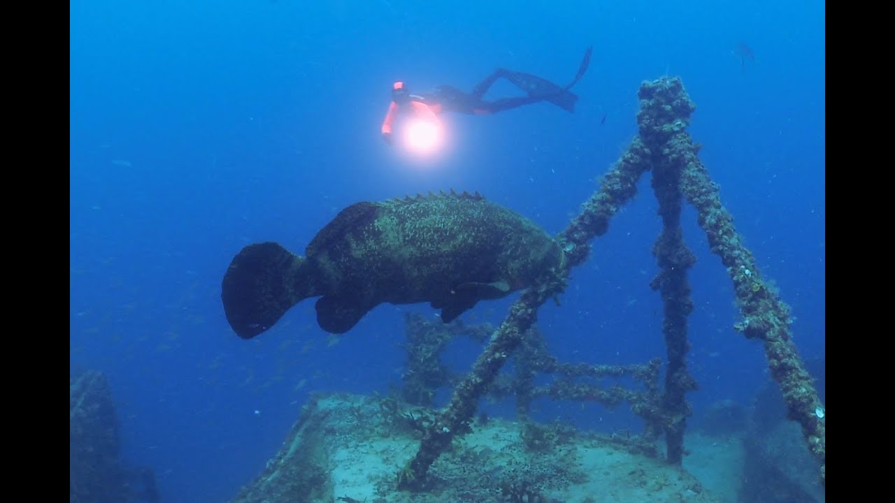 The 188 ft Thunderbolt, originally named the USS Randolph got its more epic name after it was retired from the army and used for lightning research. The ship was intentionally sunk 5 miles southeast of Marathon in 1986 in 115 ft of water as part of the Florida Keys Artificial Reef Association project. Since it was sunk, it has become a popular spearfishing spot with large game fish in the area. You can see goliath grouper, barracuda, sailfish, tarpon, permit, angelfish, amberjack, hogfish, reef shark, mutton snapper, conch, and tons of sponges and coral covering the wreck. One of the main attractions of this wreck is the large horizontal cable spool which was used to plant mines for the army. Today, it is completely covered in coral, and provides a home to many large goliath groupers.